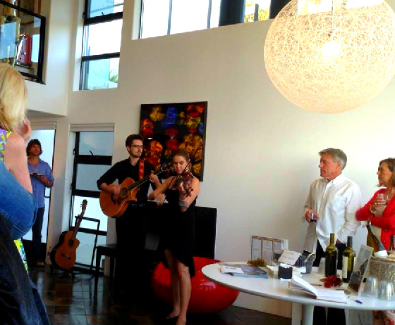 With pianist-guitarist Andrew Van Vlear at a private house concert with Sonatasia, April 2014